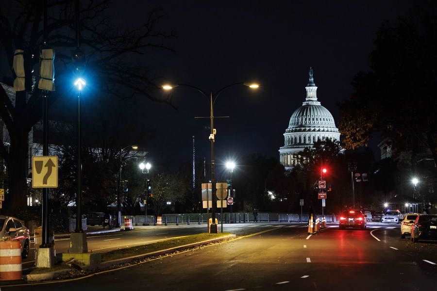 Photo taken on Dec. 2, 2021 shows the U.S. Capitol building in Washington D.C.. (Photo by Ting Shen/Xinhua)