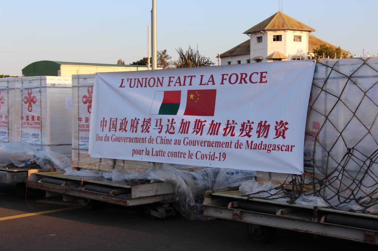 The first batch of 300,000 doses of Sinopharm COVID-19 vaccines donated to Madagascar by the Chinese government arrives at Tananarive, capital of the African country, Sept. 24, 2021. (Photo courtesy of the Chinese Embassy in Madagascar)