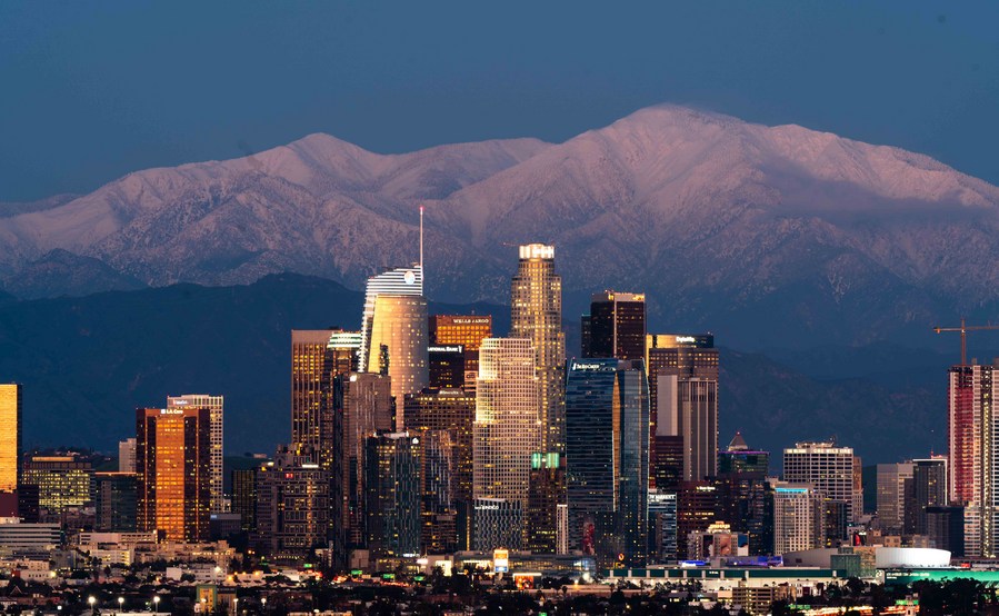 Photo taken on Feb. 6, 2019 shows a view of downtown Los Angeles after rain, the United States. (Xinhua/Qian Weizhong)