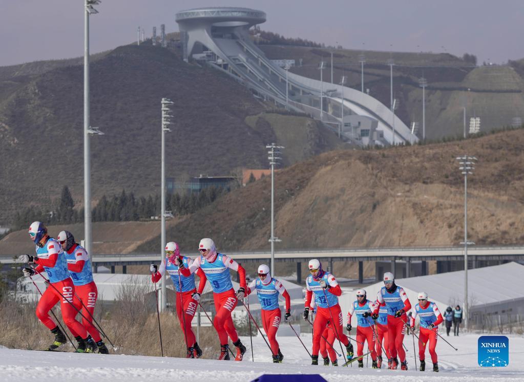 Athletes of Chinese national cross-country skiing team take part in a training session preparing for the Beijing 2022 Olympic Winter Games in Zhangjiakou City, north China's Hebei Province, on Dec. 9, 2021. (Xinhua/Hu Huhu)