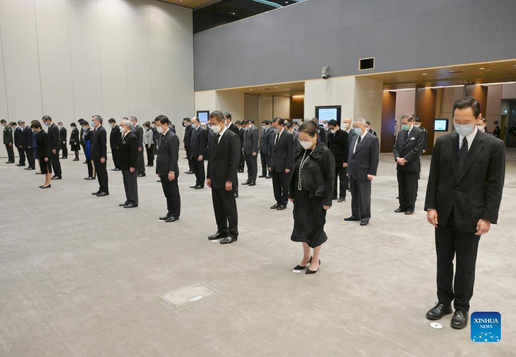 Carrie Lam, chief executive of the Hong Kong Special Administrative Region, and other government officials attend a memorial ceremony to mourn the victims of the Nanjing Massacre on the occasion of the eighth National Memorial Day in Hong Kong, south China, Dec. 13, 2021. The Nanjing Massacre took place after the Japanese troops captured the city on Dec. 13, 1937. Over six weeks, they killed about 300,000 Chinese civilians and unarmed soldiers in one of the most barbaric episodes of World War II. (Xinhua)