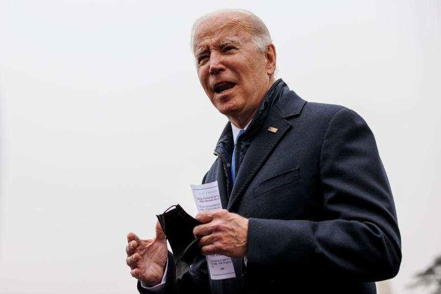 U.S. President Joe Biden speaks to the media on the South Lawn of the White House in Washington, D.C., the United States, on Dec. 8, 2021. (Photo by Ting Shen/Xinhua)