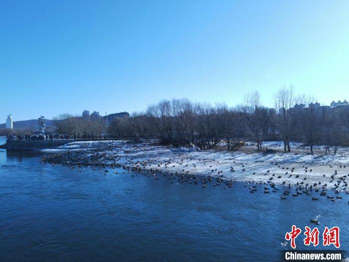 Thousands of water birds roost Songhua River in Jilin (2)
