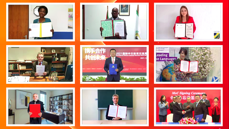 Multiple cooperation agreements are signed online. (Photo/Center for Language Education and Cooperation)