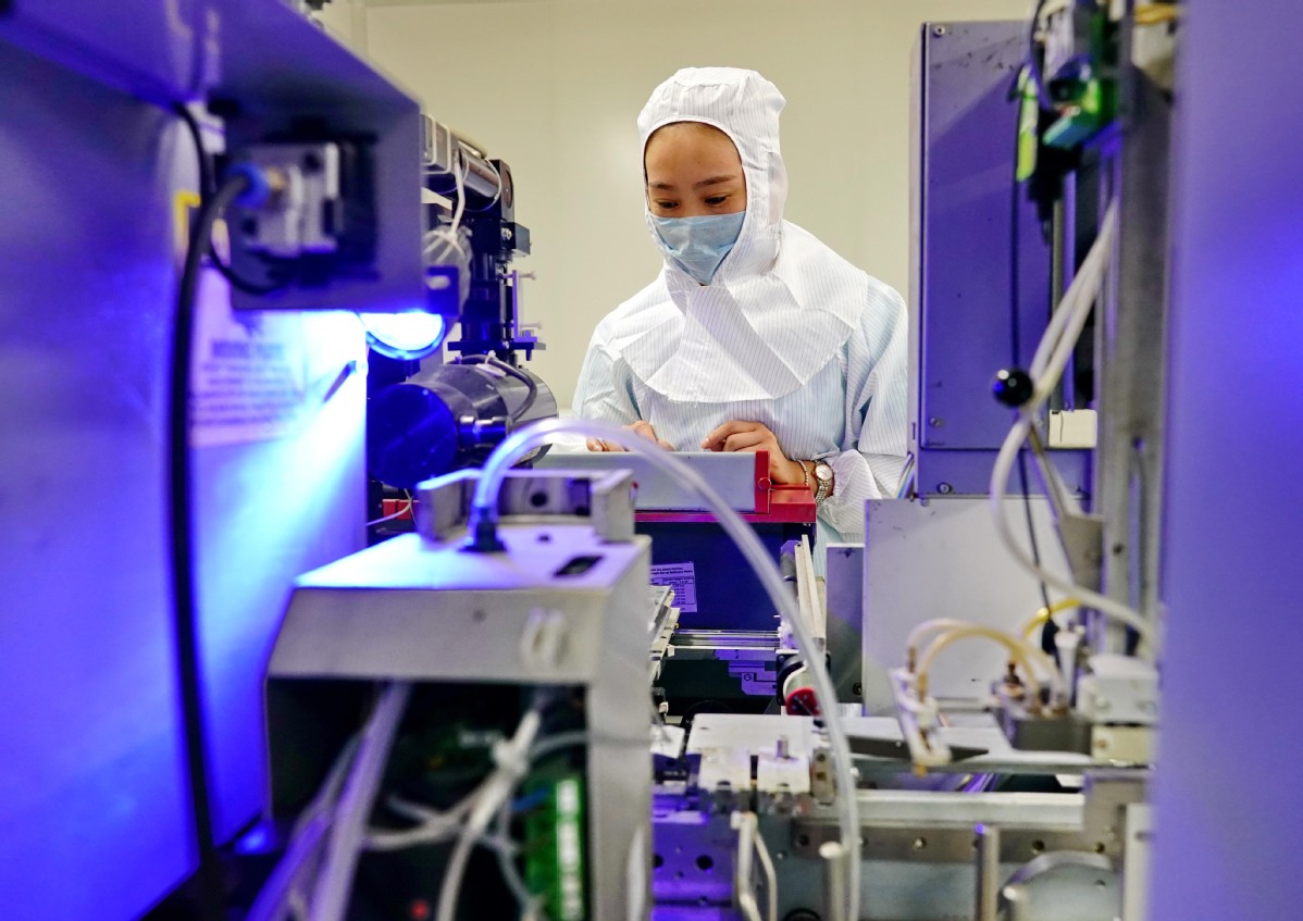 A technician works at the factory of a car making-related chip production company in Qinhuangdao, Hebei province. [Photo/Xinhua]