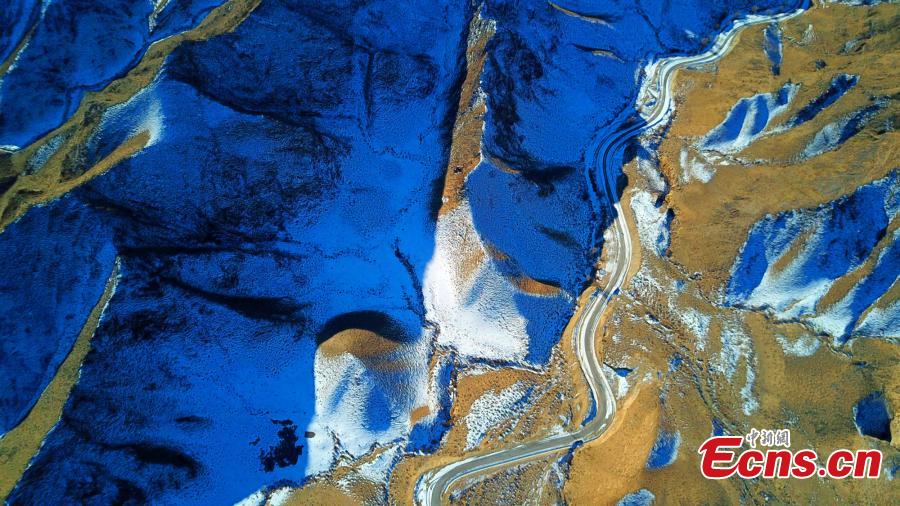 Aerial photo taken on December 13, 2021 shows a winding rural road in Hejing County of Bayingolin Mongolian Autonomous Prefecture, northwest China's Xinjiang Uyghur Autonomous Region. (Photo: China News Service)