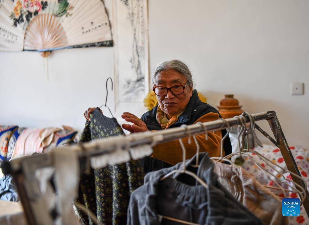 Tsering Drolma arranges her clothes at her house in Lhasa, southwest China's Tibet Autonomous Region, Dec. 7, 2021. Tsering Drolma, born in 1940, is a retiree living in urban area of Lhasa. She was once a serf and led a miserable life in childhood. At the age of 8, she was too young to do heavy work, thus she could earn few rations from the serf owner. Apart from starvation, she had to endure the coldness as her serf owner made her sleep outdoors with livestock at night. "What a felicity it was to bathe in the sunshine a little earlier everyday. The sun is unbiased to bring its warmness to everyone," Tsering said. After the democratic reform in Tibet in 1959, Tsering's life has been greatly changed. "Starvation and coldness have gone away from my life. I have three children. Two of them have received college education," said Tsering happily. Now her retirement pension ensures her stable life. Tsering has donated money to local elderly people and people with disabilities for several times. "As my sufferings had come to an end, I've tried to offer my helping hands to those in need," she said. (Xinhua/Jigme Dorje)
