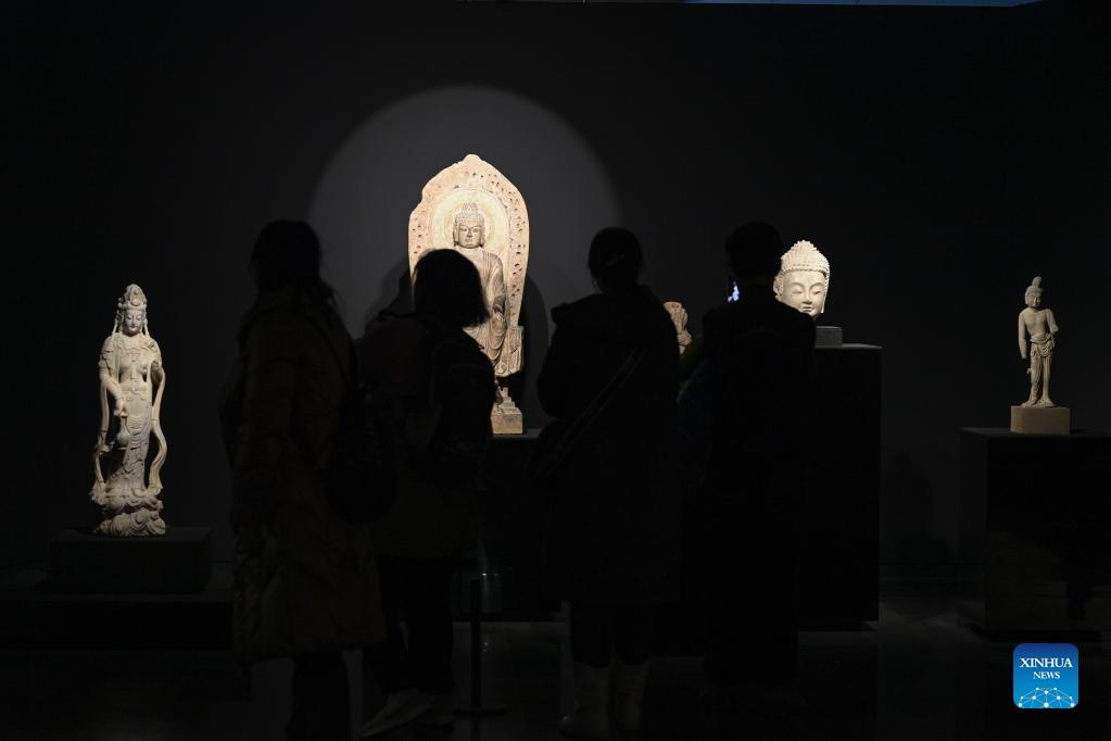 People visit the "Splendor of Huaxia: the Essence of Shanxi's Ancient Civilization" exhibition at Tsinghua University Art Museum in Beijing, capital of China, Dec. 15, 2021. The exhibition lasting until Jan. 9, 2022 displays cultural relics depicting civilizations in north China's Shanxi Province in ancient times. (Xinhua/Yin Dongxun)