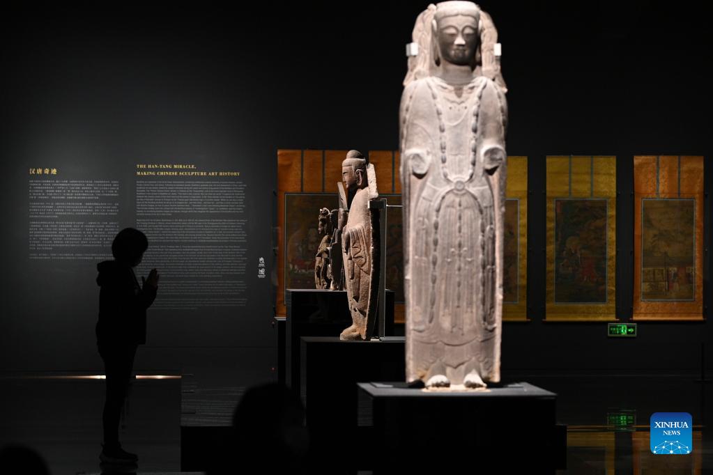 Photo taken on Dec. 15, 2021 shows cultural relics in the "Splendor of Huaxia: the Essence of Shanxi's Ancient Civilization" exhibition at Tsinghua University Art Museum in Beijing, capital of China. The exhibition lasting until Jan. 9, 2022 displays cultural relics depicting civilizations in north China's Shanxi Province in ancient times. (Xinhua/Yin Dongxun)