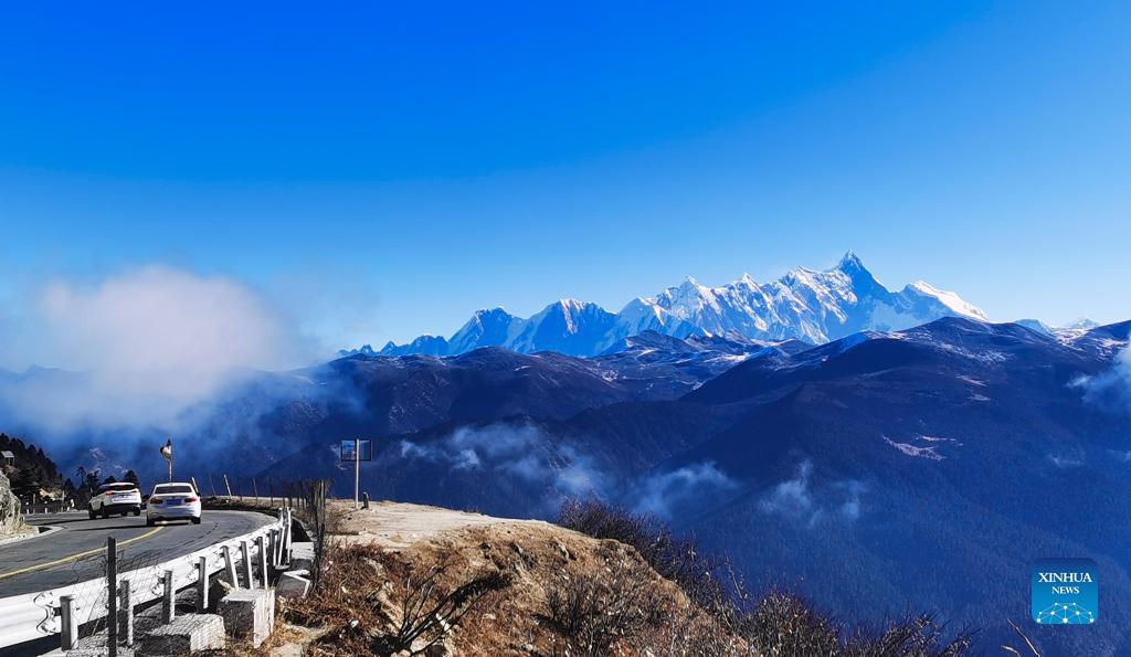 Photo taken on Dec. 16, 2021 with a mobile phone shows Mount Namjagbarwa in Nyingchi, southwest China's Tibet Autonomous Region. (Xinhua/Shen Hongbing)
