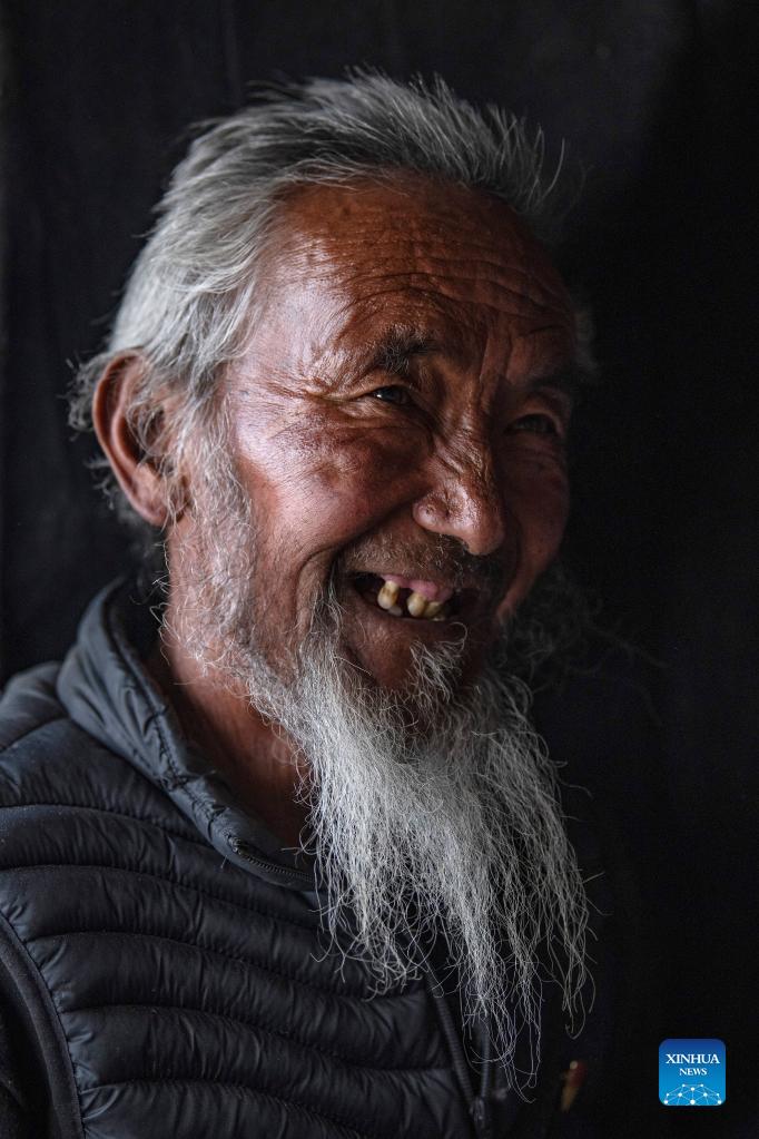 Photo taken on May 12, 2021 shows a portrait of Wangyel in Qumig Village of Gyangkar Township, Dinggye County, southwest China's Tibet Autonomous Region. Wangyel, born in 1951, was once a serf leading a miserable life since childhood. He and his mother depended on each other as his father died in his thirties. Together with tens of thousands of other serfs, Wangyel embraced a brand new life in 1959, when the democratic reform was launched in Tibet and feudal serfdom was abolished. His family secured land, houses and livestock. Wangyel entered elementary school, studied medicine after graduation, and became a village doctor in his hometown. Wangyel, who is kind and obliging by nature, has been getting along well with the villagers. He later started serving as the head of the village committee and the secretary of the Communist Party of China (CPC) branch of his village. As sandstorms constantly frequented the local area, Wangyel strived for funds of sand control and organized villagers to plant trees to improve the environment. Wangyel also devoted himself to helping locals lead a better life by developing collective economy. At present, the household number of the village has grown from 18 to 206, with an average annual per capita net income of more than 10,000 yuan (about 1,571 U.S. dollars). "My parents would be very gratified to see the present life if they could live till now," said Wangyel. (Xinhua/Sun Ruibo)