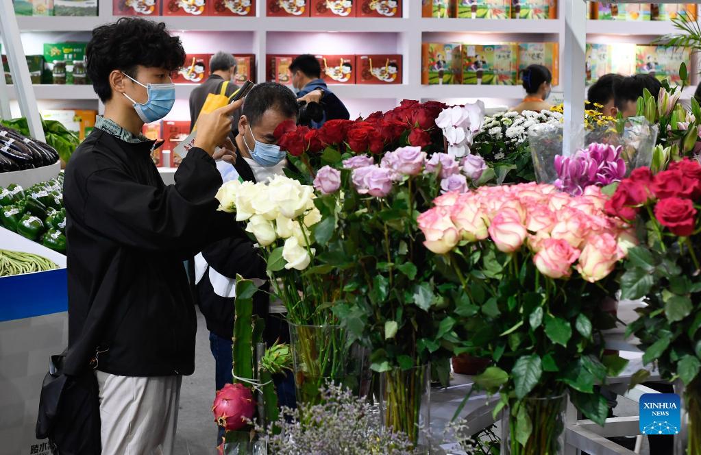People visit the 2021 China (Hainan) International Tropical Agricultural Products Winter Trade Fair in Haikou, south China's Hainan Province, Dec. 16, 2021. The agricultural products trade fair, with an exhibition area of about 100,000 square meters, attracted the participation of nearly 2,000 enterprises. (Xinhua/Yang Guanyu)