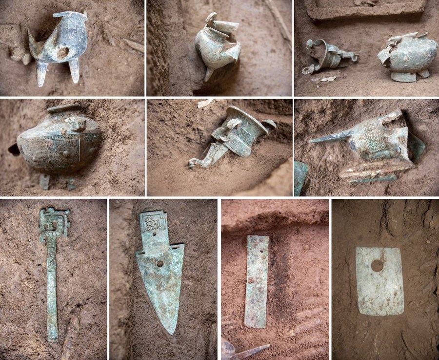 Archaeologists have so far excavated 27 tombs and unearthed 172 pieces of various items at the site, including more than 70 pieces of bronzeware, weaponry and tools, as well as pottery, jadeware and bone artifacts.