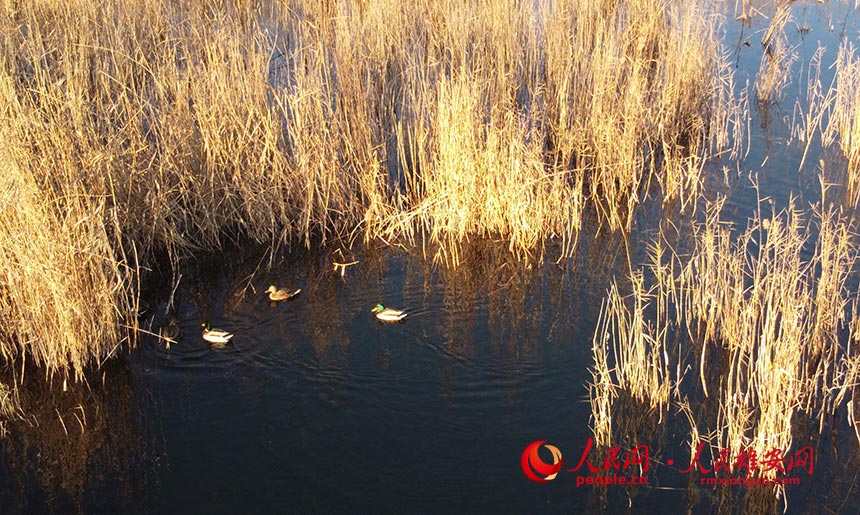 Wild birds like coots and mallard ducks are captured on camera playing and foraging at Baiyangdian Lake, located in the Xiongan New Area in north China's Hebei Province. (Photo/People's Daily Online)