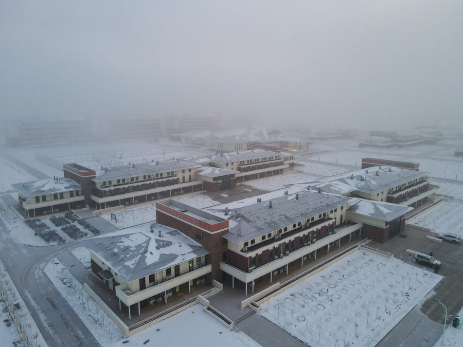 Aerial photo shows the accommodation and recreation facilities of a polysilicon company in northwest China's Xinjiang Uygur Autonomous Region, Dec. 16, 2021. (Xinhua/Gao Han)