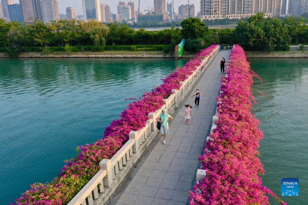 Aerial photo taken on Sept. 29, 2021 shows people enjoying their leisure time in Xiamen, southeast China's Fujian Province. This year marks the 40th anniversary of the establishment of the Xiamen Special Economic Zone (SEZ). The Xiamen SEZ has made important contributions to the country's reform, opening up, and socialist modernization, and played a unique role in promoting national reunification. (Xinhua/Jiang Kehong)