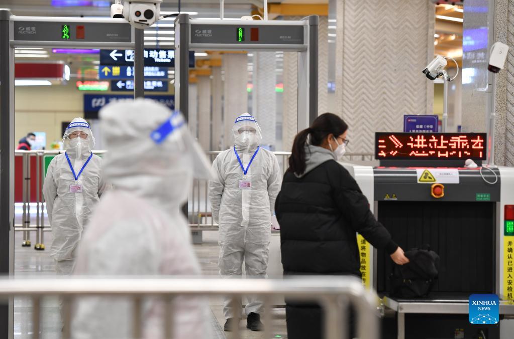 A citizen enters a subway station in Xi'an, northwest China's Shaanxi Province, Dec. 21, 2021. (Xinhua/Shao Rui)