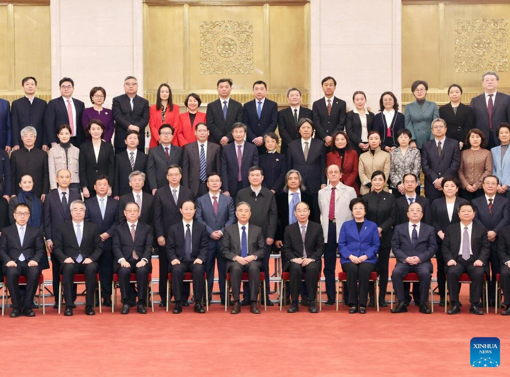 Wang Yang, a member of the Standing Committee of the Political Bureau of the Communist Party of China Central Committee and chairman of the National Committee of the Chinese People's Political Consultative Conference, meets with representatives attending the 8th council meeting of the China Soong Ching Ling Foundation in Beijing, capital of China, Dec. 22, 2021. (Xinhua/Liu Weibing)