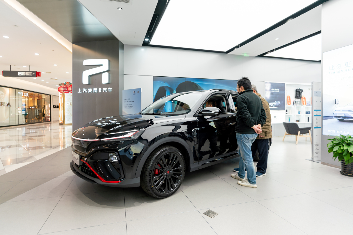 Customers inspect an SUV of SAIC Motor's R brand in Shanghai. (Photo/China Daily)