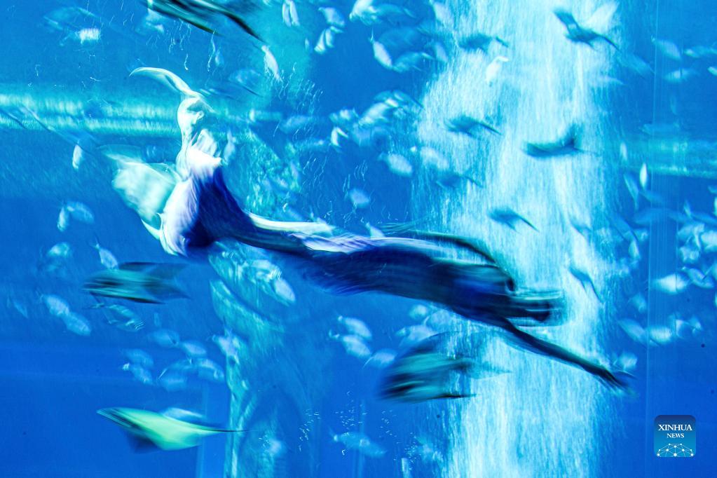A contestant participates in the final of China's First Mermaid Performance Contest in Sanya, south China's Hainan Province, Dec. 22, 2021. The event, the first national-level professional mermaid competition, was held at Atlantis Sanya in Hainan. (Xinhua/Pu Xiaoxu)