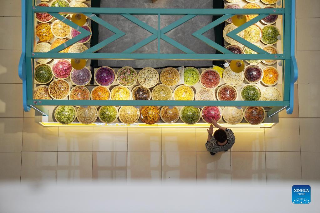 A citizen selects food at a shopping mall in Harbin, northeast China's Heilongjiang Province, Dec. 22, 2021. The whole city of Harbin downgraded to the low-risk category for COVID-19 on Wednesday. (Xinhua/Wang Jianwei)