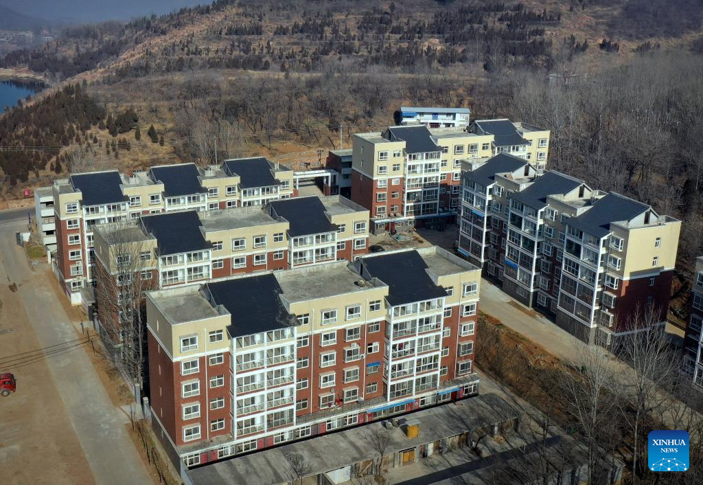 Aerial photo taken on Dec. 22, 2021 shows residential buildings at Fuxi Mountain tourism area in Xinmi City, central China's Henan Province. In recent years, Fuxi Mountain area in Xinmi, has taken advantages of natural resources and local culture to promote tourism. By participating in the construction of scenic spots and providing jobs in these spots, it has helped more than 20,000 local people increase their income and promote regional economy development. (Xinhua/Li Jianan)