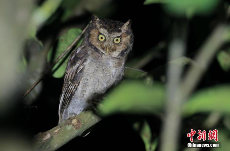 Photo shows mountain scops owl in Wuyanling National Nature Reserve, east China's Zhejiang Province. (Photo provided by Wuyanling National Nature Reserve management center)