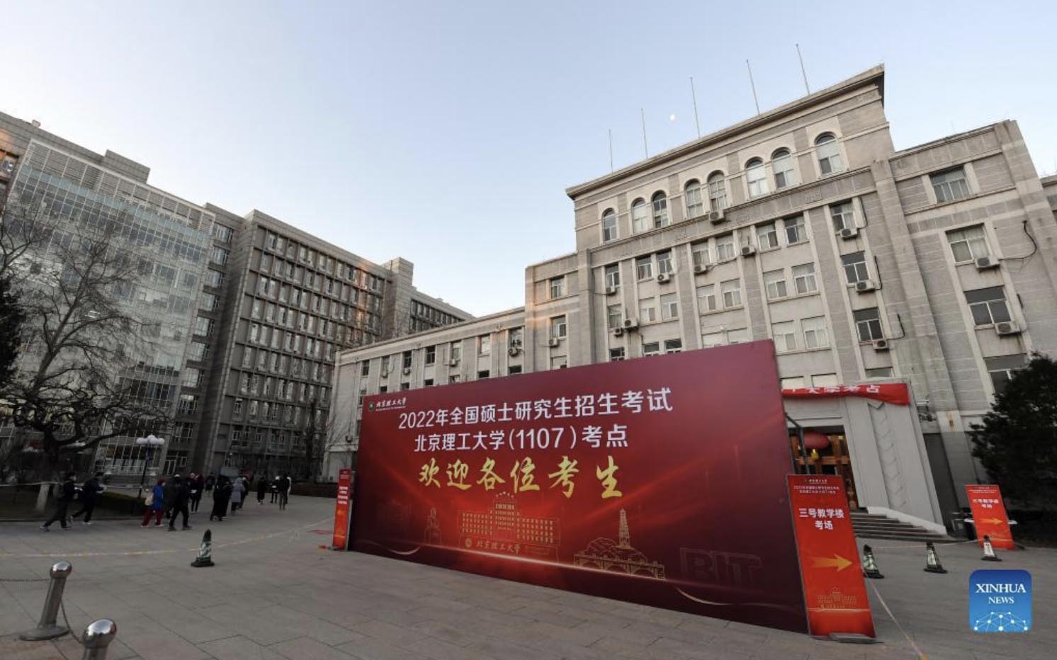 Photo taken on Dec. 25, 2021 shows the exam site for postgraduate entrance exams in Beijing Institute of Technology in Beijing, capital of China. China's 2022 national entrance exams for postgraduate studies kicked off on Saturday. (Xinhua/Ren Chao)