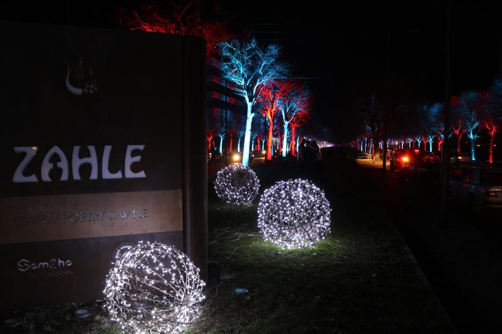Photo taken on Dec. 25, 2021 shows light decorations of the Christmas village in Zahle, eastern Lebanon. (Photo by Taher Abu Hamdan/Xinhua)
