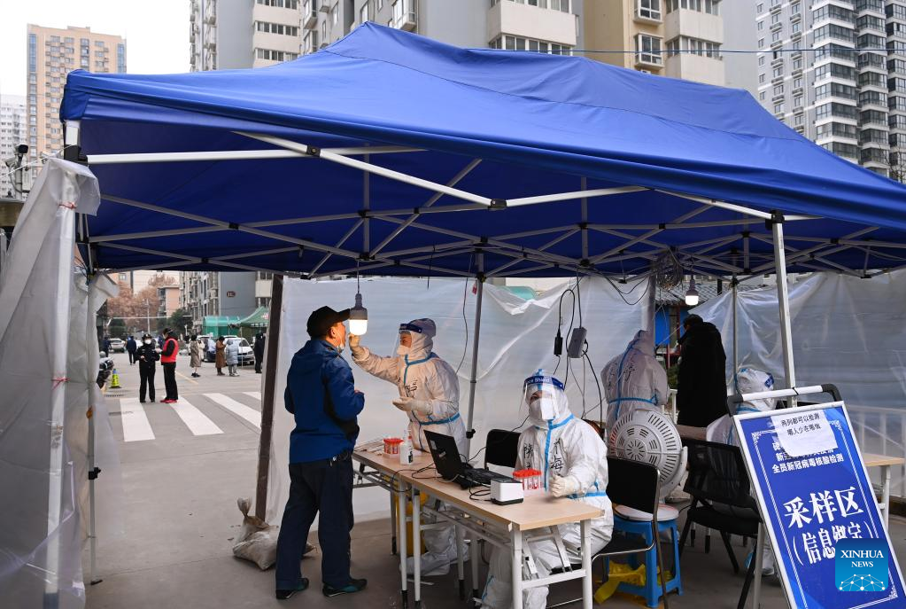 A resident takes a nucleic acid test in Xi'an, northwest China's Shaanxi Province, Dec. 27, 2021. Xi'an has strengthened its anti-epidemic measures and implemented the strictest closed-off management starting from Monday to curb the spread of the latest COVID-19 resurgence. (Xinhua/Tao Ming)