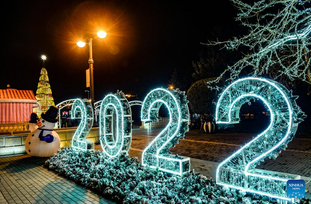 New Year lights and decorations are seen in the downtown area of Baku, Azerbaijan, on Dec. 25, 2021. (Photo by Tofik Babayev/Xinhua)