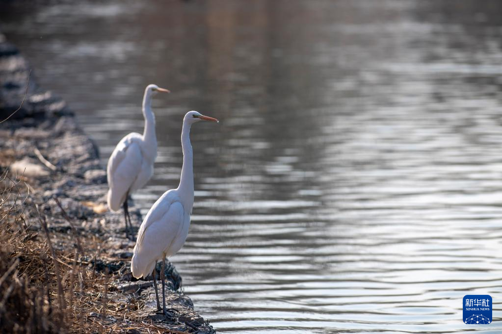 Egrets are seen at Fenhe river wetland park in Taiyuan, north China's Shanxi Province, Dec. 28, 2021. (Xinhua/Yang Chenguang)