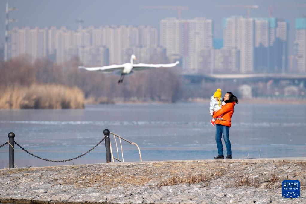 An egret is seen at Fenhe river wetland park in Taiyuan, north China's Shanxi Province, Dec. 28, 2021. (Xinhua/Yang Chenguang)