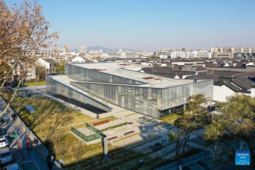 Aerial photo taken on Dec. 28, 2021 shows the city wall museum of Nanjing in Nanjing, capital of east China's Jiangsu Province. The Nanjing city wall museum opened for trial service here Tuesday. It will showcase the historic and cultural value of the Nanjing city wall from various aspects. (Xinhua/Ji Chunpeng)