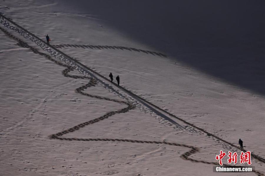 Sunlight and shadow on the vast sea of sand create a picturesque desert landscape at the Mingsha Mountain and Yueyaquan (Crescent Spring) scenic spot in Dunhuang City, northwest China's Gansu Province. (Photo by Zhang Xiaoliang)