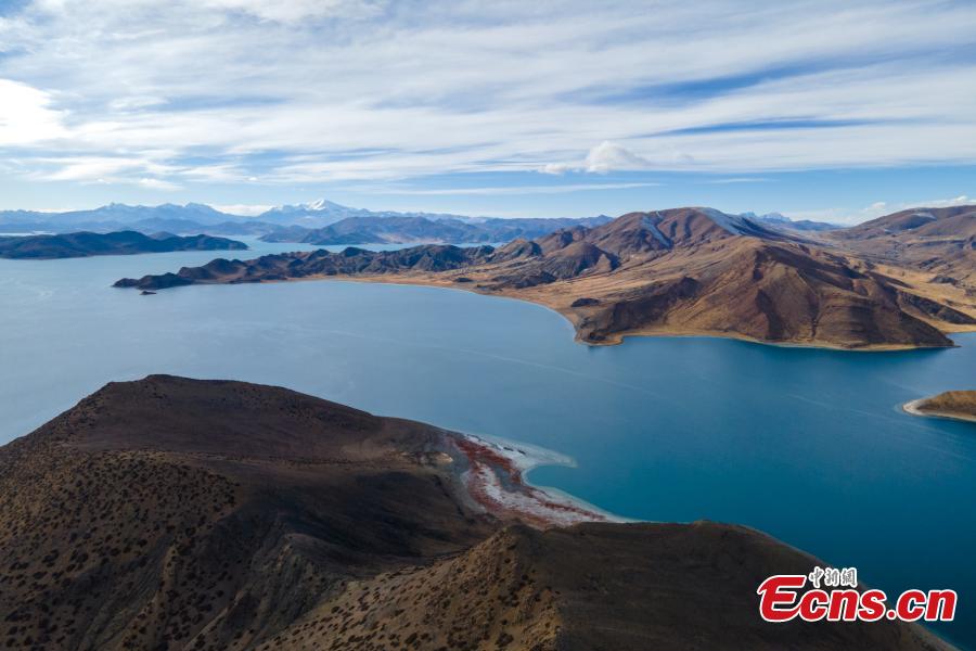 Photo taken on Dec. 28, 2021 shows charming winter view of Yamdrok Lake, one of the three holy lakes in SW China’s Tibet Autonomous Region. (China News Service/Jiang Feibo)