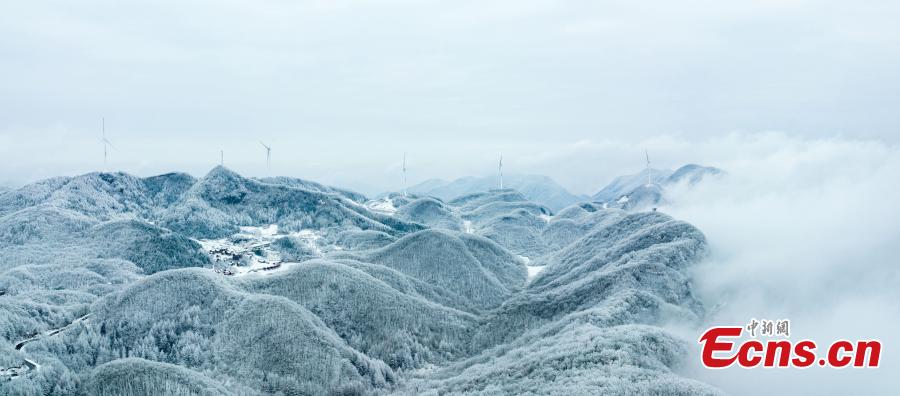 Hengchong scenic spot is blanketed by ethereal white snow in Houping Town, Baokang County, central China's Hubei Province, Dec. 26, 2021. (China News Service/Chen Quanlin)