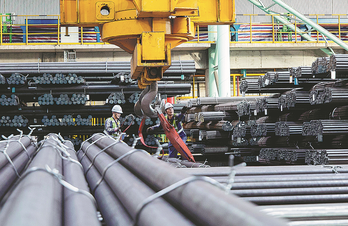 Employees work at an iron and steel plant in Ma'anshan, Anhui province. [Photo by Luo Jisheng/For China Daily]
