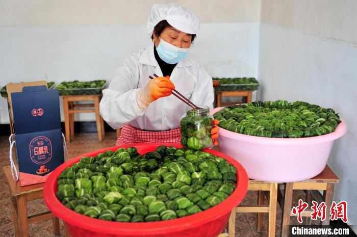 Workers wrap fermented bean curd in cabbage leaves. (Photo/Zhang Guorong)