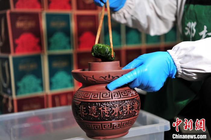 A worker puts fermented bean curd into a jar. (Photo/Zhang Guorong)