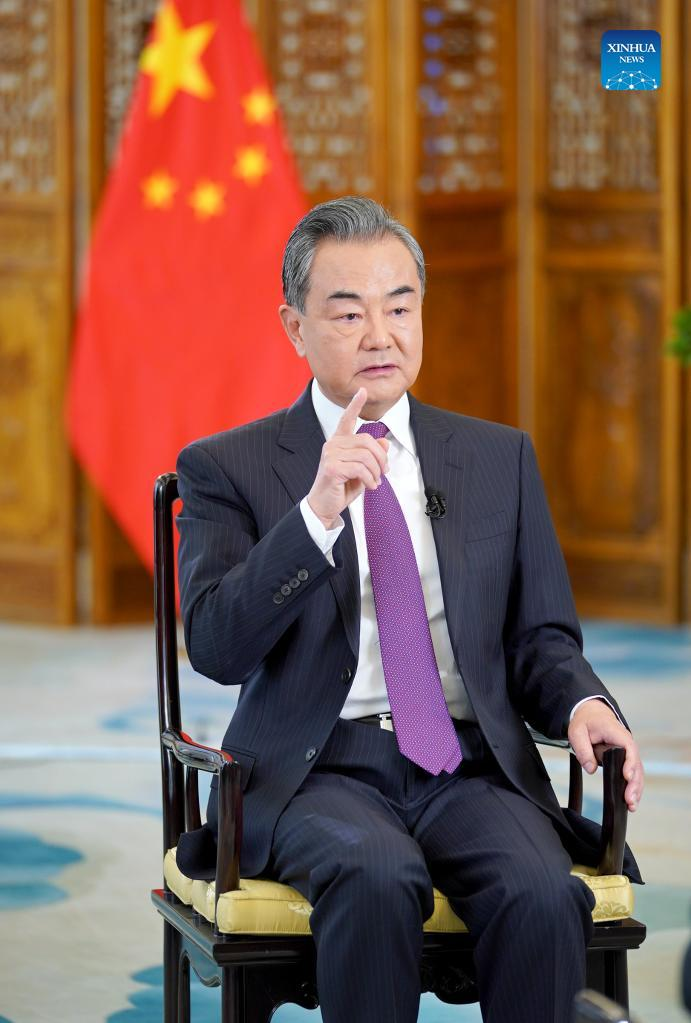 Chinese State Councilor and Foreign Minister Wang Yi speaks in an interview with Xinhua News Agency and China Media Group on the international situation and China's diplomacy in 2021, on Dec. 30, 2021. (Xinhua/Yue Yuewei)