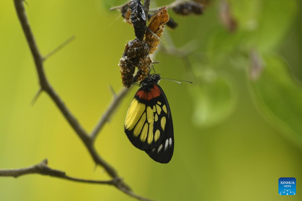 Photo taken on Dec. 30, 2021 shows a red-spot jezebel butterfly on a branch in Nagaon district of India's northeastern state of Assam. (Str/Xinhua)