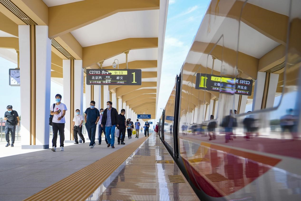 Photo taken on August 31 shows passengers getting ready to get on a high-speed train that runs between Beijing and Xiong’an New Area in north China’s Hebei province. (People’s Daily Online/Sun Lijun)