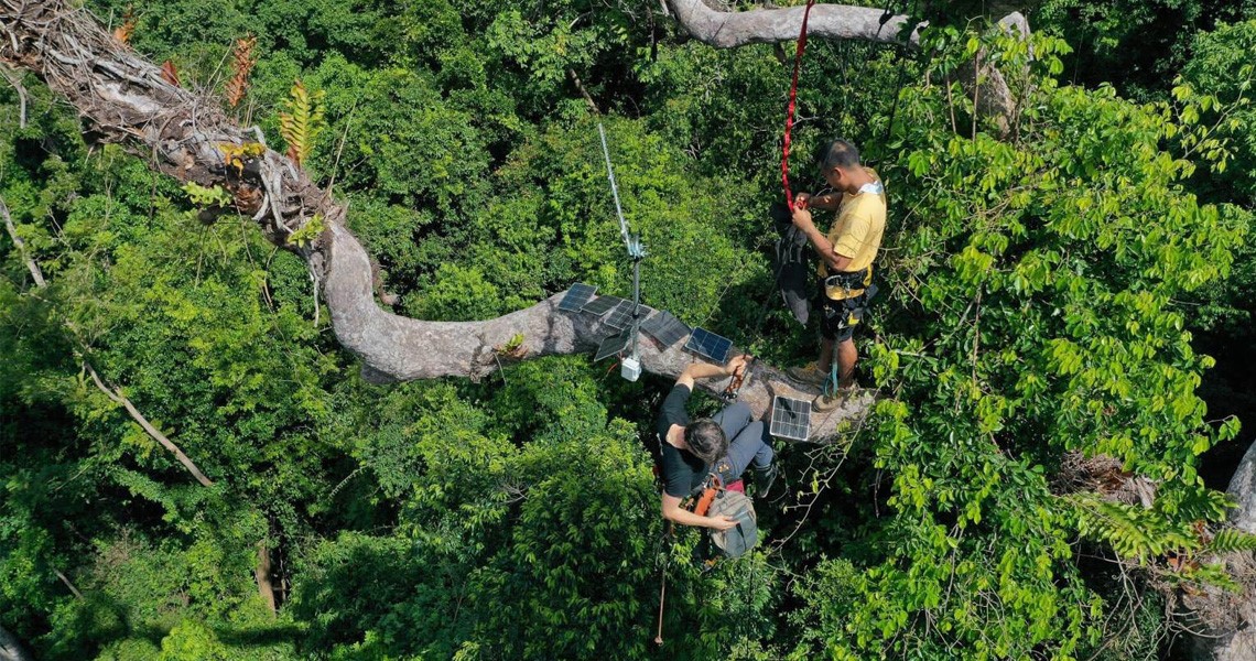 Photo shows workers installing Guardian system, an ecological acoustic monitoring system developed by Chinese telecom giant Huawei, in the Palawan rainforest in the Philippines. (Photo/www.huawei.com)