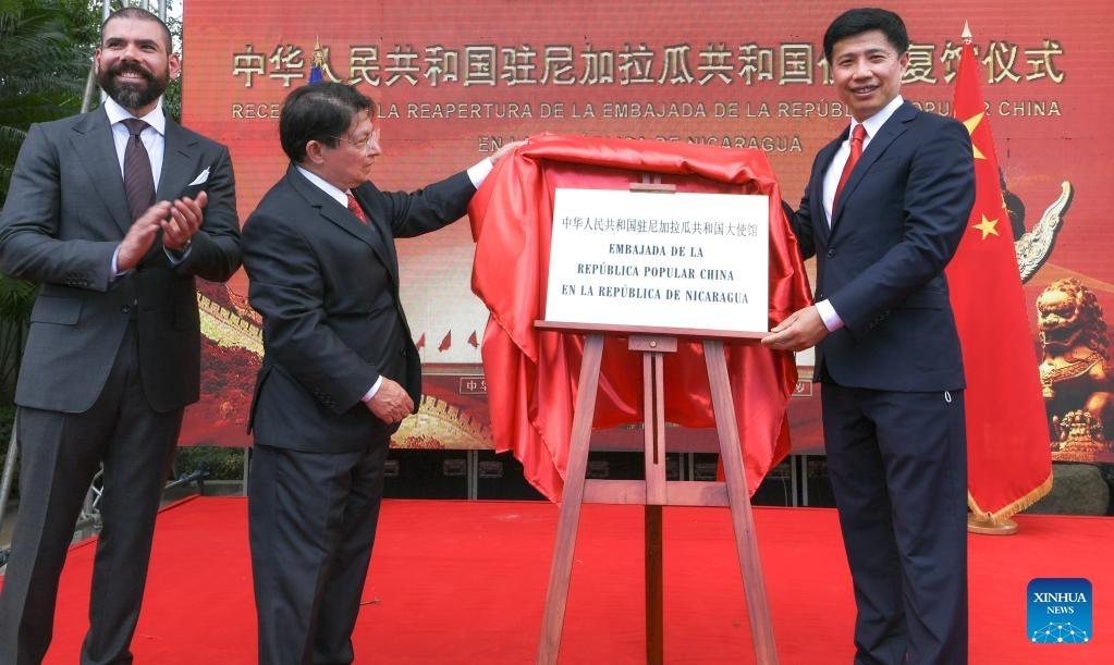 China officially reopens its embassy in Managua, Nicaragua, Dec. 31, 2021, after the two countries resumed diplomatic relations on Dec. 10. (Xinhua/Xin Yuewei)