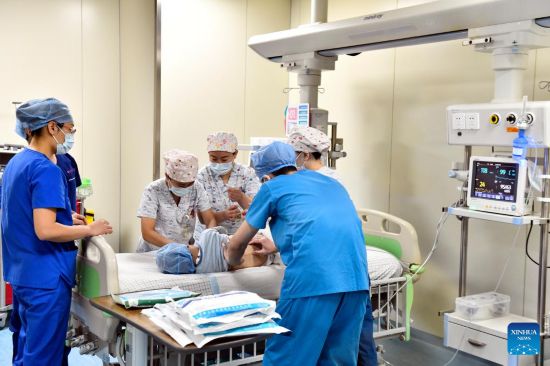 Medical workers prepare to inject Spinraza to a 4-year-old child diagnosed with spinal muscular atrophy (SMA) at a hospital in Zaozhuang, east China's Shandong Province, Jan. 1, 2022. China is striving to improve the diagnosis and treatment of rare diseases.