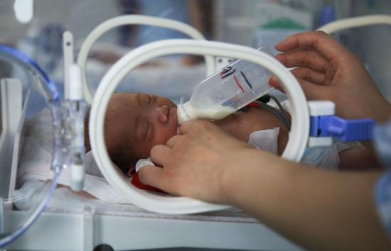 A nurse feeds a new-born at a hospital in Dingxi, northwest China's Gansu Province, Jan. 1, 2022. (Photo by Wang Kexian/Xinhua)