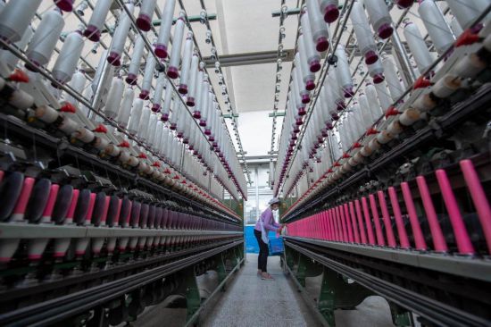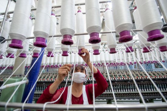 A worker works at a textile company in Nantong, east China's Jiangsu Province, Jan. 1, 2022. (Photo by Xu Jinbai/Xinhua)