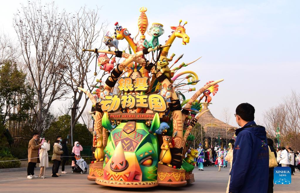 Tourists watch in a show at an animal-themed park in Zhengzhou, central China's Henan Province, Jan. 2, 2022. (Xinhua/Zhu Xiang)