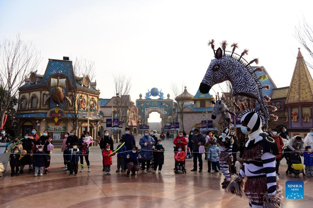 Tourists watch in a show at an animal-themed park in Zhengzhou, central China's Henan Province, Jan. 2, 2022. (Xinhua/Zhu Xiang)